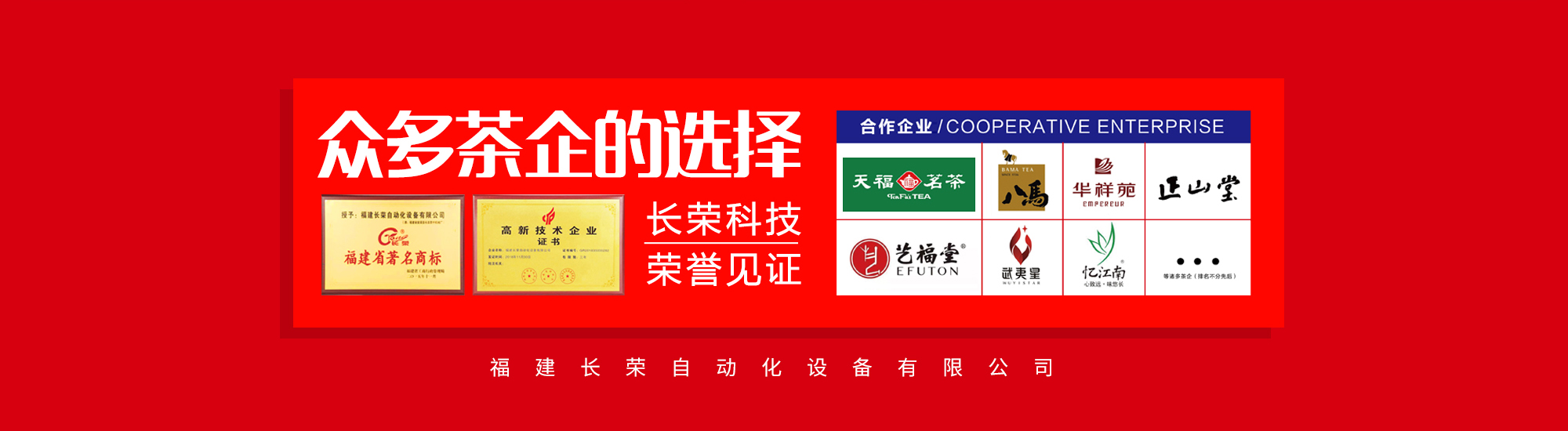 福建長(zhǎng)榮自動(dòng)化設(shè)備有限公司,成立于2009年,是一家集研發(fā)、生產(chǎn)、銷(xiāo)售、售后為一體的高新技術(shù)企業(yè)。現(xiàn)已成為行業(yè)領(lǐng)先的包裝設(shè)備制造商,公司堅(jiān)持以“品質(zhì)求發(fā)展”為理念,并以雄厚的技術(shù)力量為依托,以科技創(chuàng)新為先導(dǎo),不斷開(kāi)拓創(chuàng)新,積極探索開(kāi)發(fā)智能化、自動(dòng)化的包裝設(shè)備及為客戶(hù)提供更有價(jià)值的整體解決方案。公司致力服務(wù)于茶企、食品加工類(lèi)、五金類(lèi)、塑料、醫(yī)藥等行業(yè)領(lǐng)域。近幾年我公司以?xún)?yōu)異的產(chǎn)品品質(zhì)和良好的品牌形象,致力于鑄造食品、茶行業(yè)包裝設(shè)備強(qiáng)勢(shì)品牌,成為八馬、華祥苑、天福茗茶、武夷星、憶江南、憶福堂、南興天虹果仁等著名企業(yè)設(shè)備供應(yīng)商。